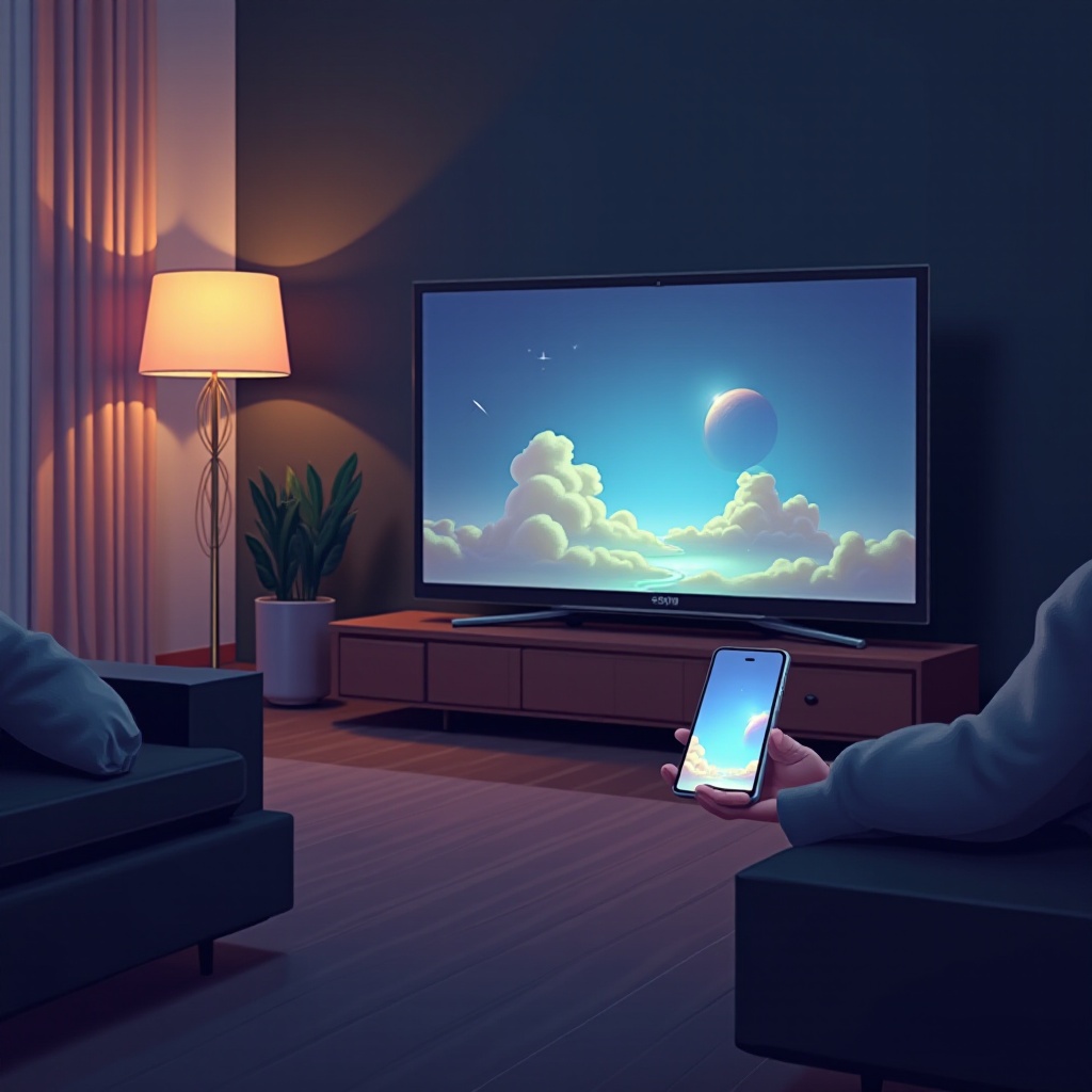 2. Thao tác kết nối từng bước: Sau khi chọn tivi, điện thoại sẽ tự động kết nối và bạn có thể bắt đầu trình chiếu nội dung lên màn hình lớn.